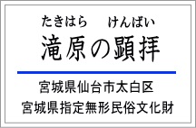 滝原の顕拝(けんばい)は、念仏踊を源流とする古態の念仏剣舞である仙台剣舞のなかでも独特の芸能をみせ、「顕拝」と書いているものは他にありません。