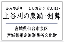 上谷刈に伝わる鹿踊・剣舞は「福岡の鹿踊・剣舞」と同じ由来をも持ち、ほぼ同時期に八幡町龍宝寺籐九郎より伝承されたものとみられます。