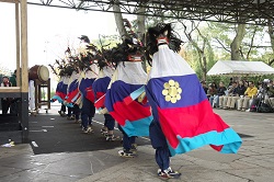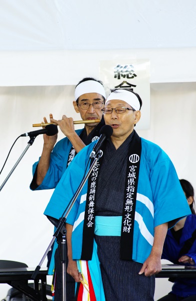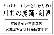 剣舞は4曲で勇壮に踊られるのが特色です。仙台城下八幡堂に伝わっていた鹿踊と剣舞が川前に相伝されたもので、藩から鹿踊の幌幕に絹布の使用を特に認められたといわれています。 |