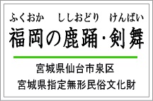 福岡の鹿踊・剣舞は、藩政時代に仙台城下八幡町龍宝寺が管轄した八幡町の鹿踊・剣舞が伝わったものであるとされています。