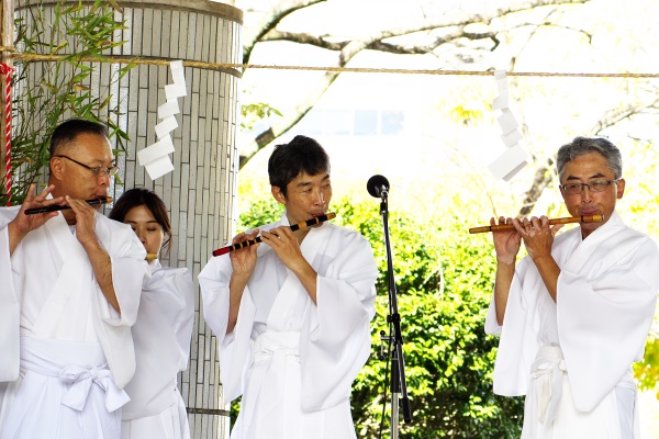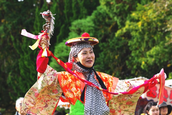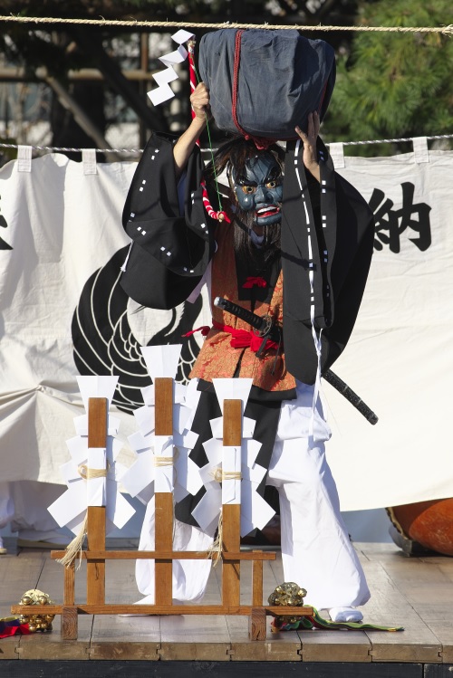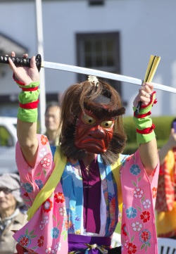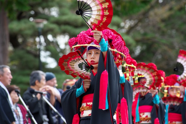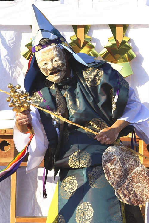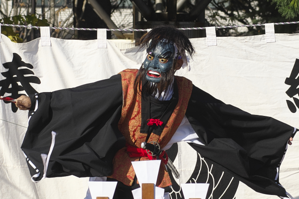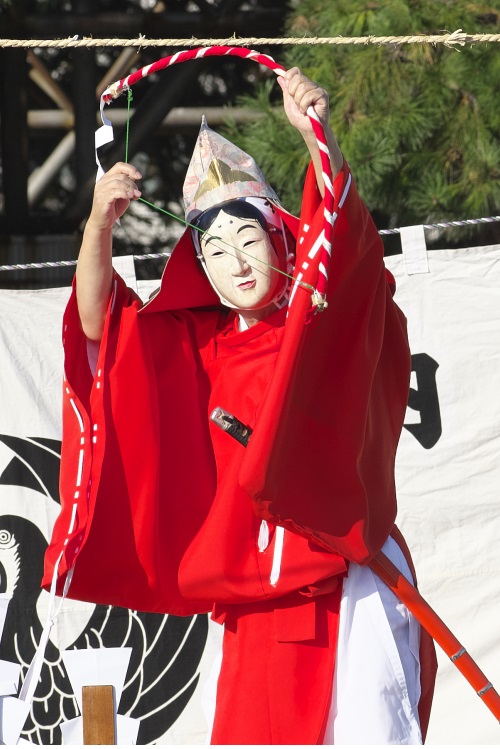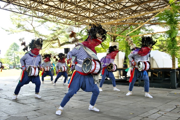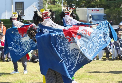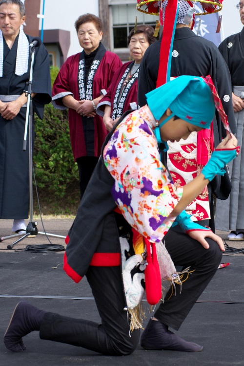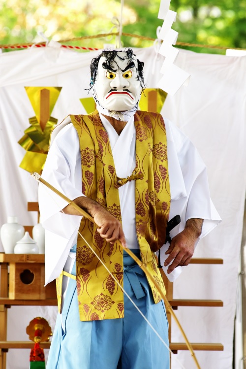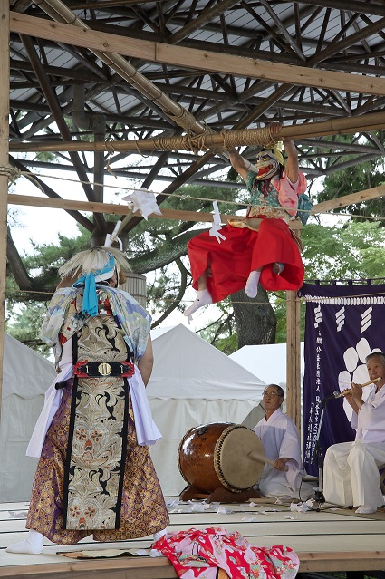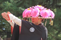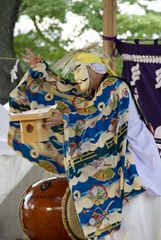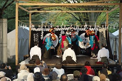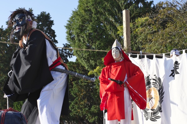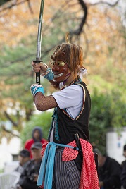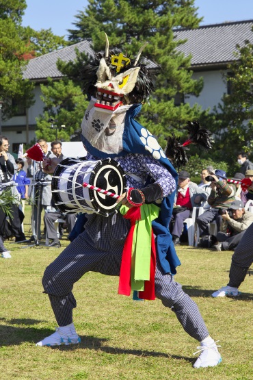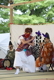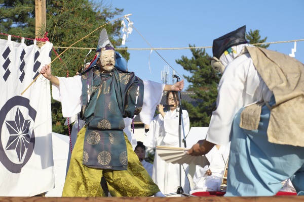 複雑な演舞の技法が正確に伝えられており、装束、唯子、踊歌、舞振等の様式や慣行は、修験道の古い信仰の形を残しています。 |