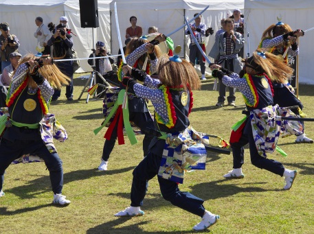 他の仙台剣舞がいずれも鹿踊と一対となって伝承されているなかで、「滝原の顕拝」と「野口の鹿踊」がそれぞれ独立して伝わっています。 |