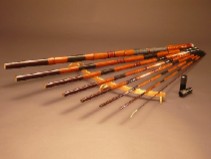 これまでに、「桶作り―高橋長三郎さんの技術―」をはじめとし、15本のビデオテープを制作しました。 平成19年度に制作した「仙台竿―竿政・田村政孝の技―」では、最後の仙台竿の竿師(さおし・釣り竿を作る人)である田村政孝さんが釣竿を作る様子をご紹介しています。 仙台竿はかつて伊達政宗も愛用したと伝えられるもので、馬の毛1本で大物を釣り上げられるほど性能がよいと言われます。また竿に塗られた漆は華麗な模様が研ぎだされ、見た目にも非常に美しい装飾が施されています。ビデオでは、材料である竹の選定から、竹を火にかけてクセ(曲がり)を修正していく様子や竹を3本張り合わせて作られる穂先部分の制作工程など、竹が竿へと生まれ変わっていく過程を収録しています。
