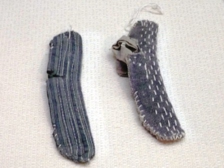 仙台市若林区七郷の農家では、着古した布をためておいて、手ぬぐいの四分の一位の大きさに何枚も重ね、糸で刺してテマタを作りました。