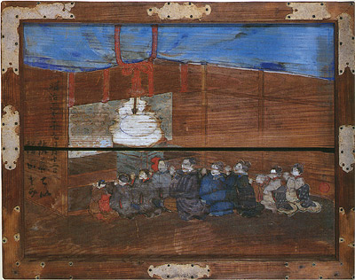 奉納絵馬「家族拝み」 735x940x35(たて x よこ x 厚さ 単位mm)